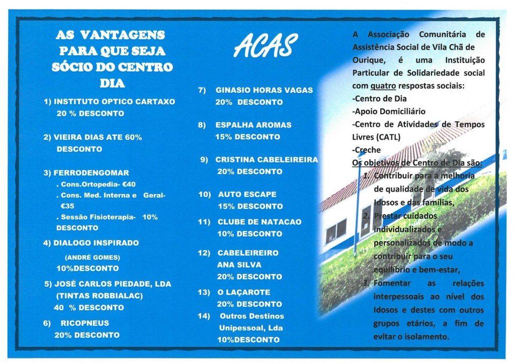 A ACAS tem como objectivo contribuir para a promoção da população de Vila Chã de Ourique, em particular, e do concelho do Cartaxo em geral, mantendo actividades destinadas aos bem-estar das crianças, dos idosos e da comunidade.